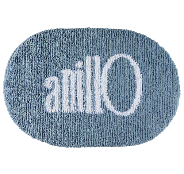 Anilo's blue-colored lifestyle object is a bathroom rug made of soft and voluminous material.